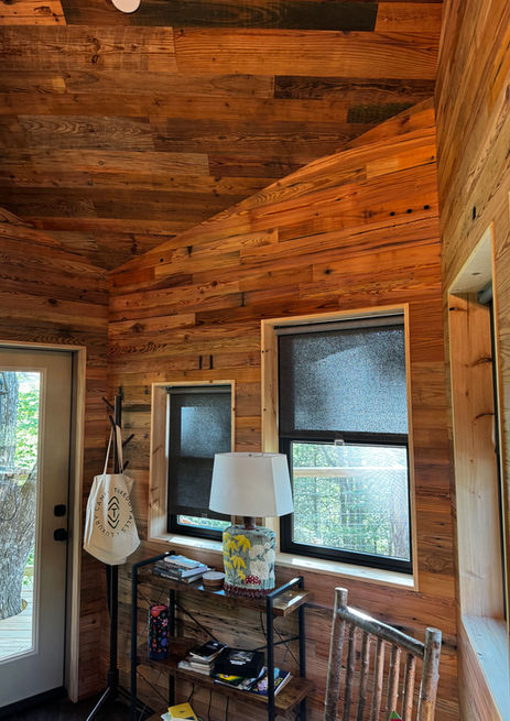This one-of-a-kind treehouse interior was a true collaboration of craftsmanship and imagination. Every wall and ceiling plank was carefully selected and installed with meticulous attention to alignment, grain, and seamless joints — a process that took time, precision, and an eye for harmony.